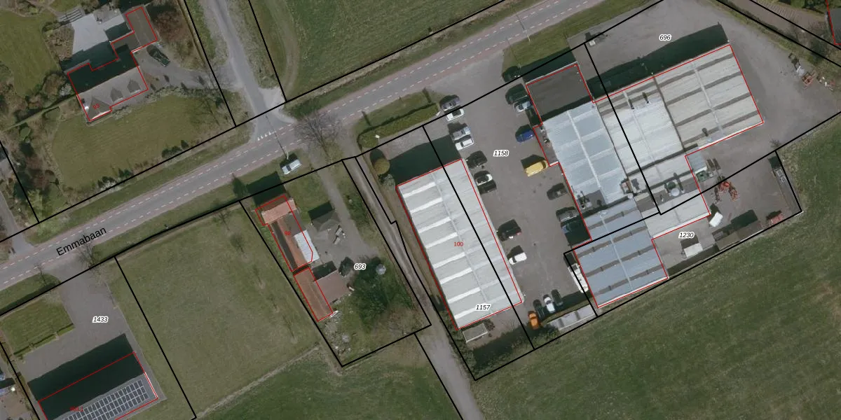 Emmabaan 100 is gelegen op kadastraal perceel AEL00N1157. Deze kadastrale aanduiding is uniek en wordt gebruikt door het Kadaster om eigendomsrechten en andere zakelijke rechten vast te leggen. Het perceel maakt onderdeel uit van de kadastrale gemeente Axel.