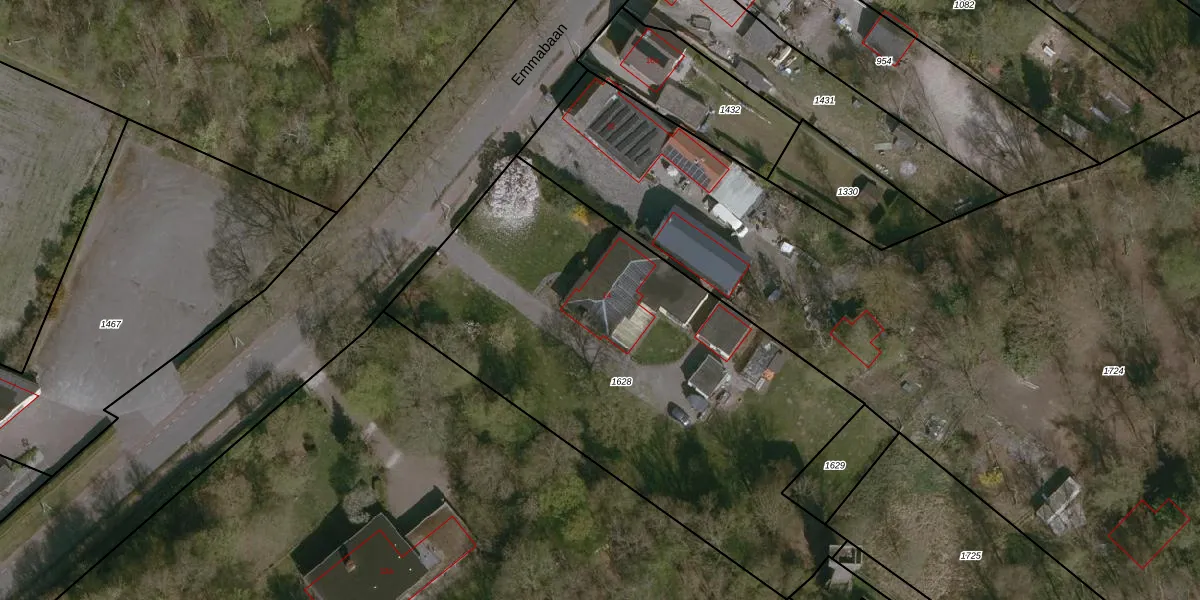 Het perceel waarop Emmabaan 14 staat heeft een oppervlakte van 2672 m². Dit is een zeer groot perceel. De perceeloppervlakte wordt geregistreerd door het Kadaster. Gedetailleerde informatie over de maten van dit perceel kunt u vinden in het rapport Kadastrale kaart met maatvoering van Emmabaan 14.