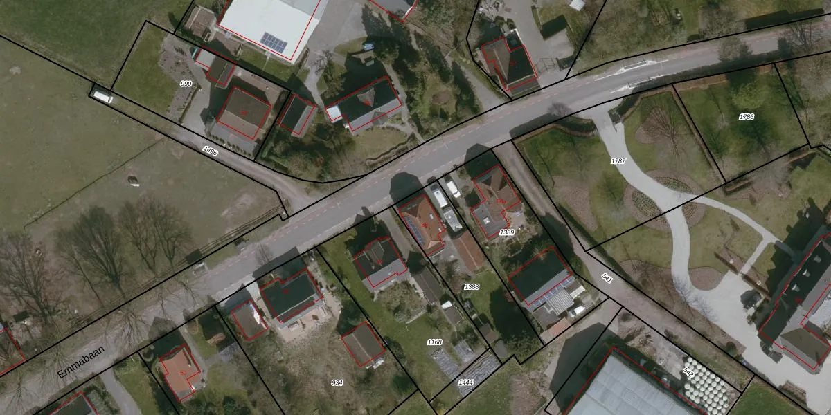 Het perceel waarop Emmabaan 56 staat heeft een oppervlakte van 580 m². Dit is een groot perceel. De perceeloppervlakte wordt geregistreerd door het Kadaster. Gedetailleerde informatie over de maten van dit perceel kunt u vinden in het rapport Kadastrale kaart met maatvoering van Emmabaan 56.
