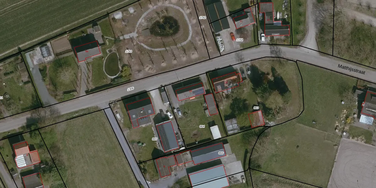 Het perceel waarop Matthijsstraat 10 staat heeft een oppervlakte van 845 m². Dit is een groot perceel. De perceeloppervlakte wordt geregistreerd door het Kadaster. Gedetailleerde informatie over de maten van dit perceel kunt u vinden in het rapport Kadastrale kaart met maatvoering van Matthijsstraat 10.
