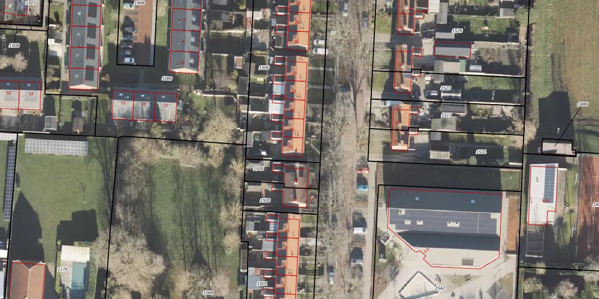 Het perceel waarop het adres ligt is STR02-K-1506. De afkorting 'STR02' staat voor kadastrale gemeente Slochteren. Het perceel is 1627 m² groot. Dat is kleiner dan de gemiddelde perceeloppervlakte in Slochteren, dat op 1,2 ha ligt. Het kleinste perceel in de kadastrale gemeente is 0 m² groot. De grootste perceeloppervlakte is 2,45 km². Op het perceel zijn 9 adressen aanwezig. De huidige grenzen van het perceel zijn digitaal in de Basisregistratie Kadaster (BRK) geregistreerd op 28-10-2009.