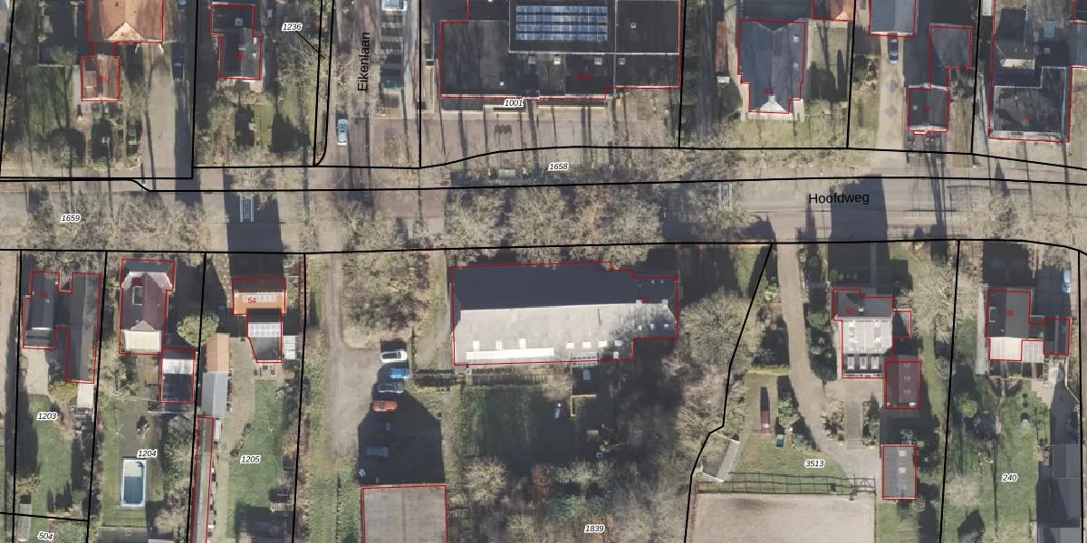 Het perceel waarop Hoofdweg 52 staat heeft een oppervlakte van 5485 m². Dit is een zeer groot perceel. De perceeloppervlakte wordt geregistreerd door het Kadaster. Gedetailleerde informatie over de maten van dit perceel kunt u vinden in het rapport Kadastrale kaart met maatvoering van Hoofdweg 52.