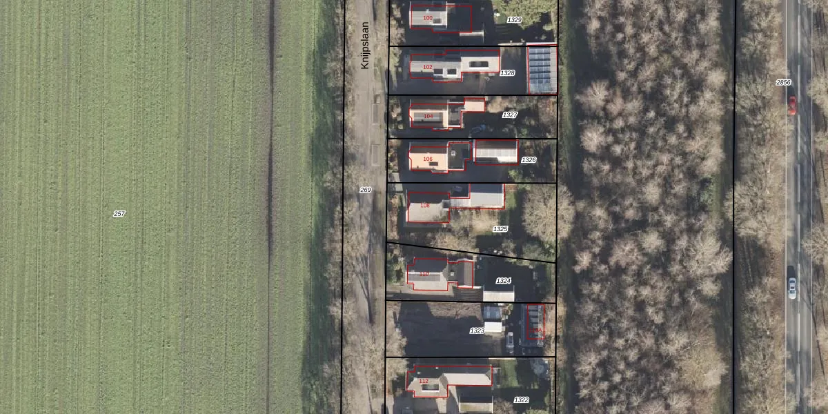 Knijpslaan 108 is gelegen op kadastraal perceel STR02U1325. Deze kadastrale aanduiding is uniek en wordt gebruikt door het Kadaster om eigendomsrechten en andere zakelijke rechten vast te leggen. Het perceel maakt onderdeel uit van de kadastrale gemeente Slochteren.