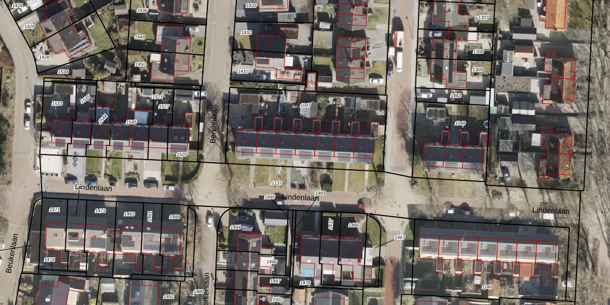 Het perceel waarop Lindenlaan 13 staat heeft een oppervlakte van 1280 m². Dit is een zeer groot perceel. De perceeloppervlakte wordt geregistreerd door het Kadaster. Gedetailleerde informatie over de maten van dit perceel kunt u vinden in het rapport Kadastrale kaart met maatvoering van Lindenlaan 13.