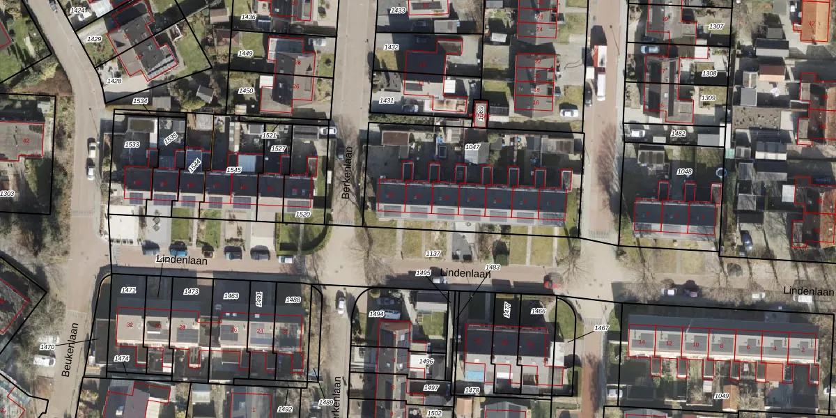 Het perceel waarop Lindenlaan 17 staat heeft een oppervlakte van 1280 m². Dit is een zeer groot perceel. De perceeloppervlakte wordt geregistreerd door het Kadaster. Gedetailleerde informatie over de maten van dit perceel kunt u vinden in het rapport Kadastrale kaart met maatvoering van Lindenlaan 17.