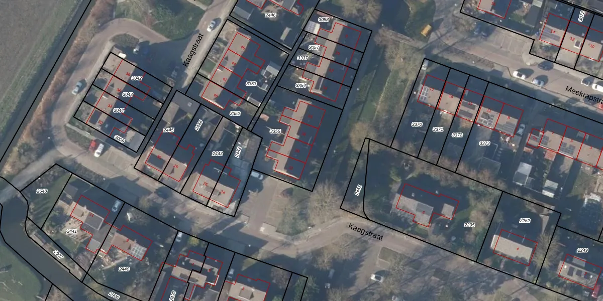 Kaagstraat 20 is gelegen op kadastraal perceel BSG00B3355. Deze kadastrale aanduiding is uniek en wordt gebruikt door het Kadaster om eigendomsrechten en andere zakelijke rechten vast te leggen. Het perceel maakt onderdeel uit van de kadastrale gemeente Barsingerhorn.
