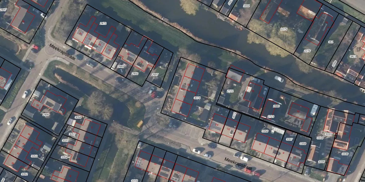 Het perceel waarop Meekrapstraat 18 staat heeft een oppervlakte van 1050 m². Dit is een zeer groot perceel. De perceeloppervlakte wordt geregistreerd door het Kadaster. Gedetailleerde informatie over de maten van dit perceel kunt u vinden in het rapport Kadastrale kaart met maatvoering van Meekrapstraat 18.