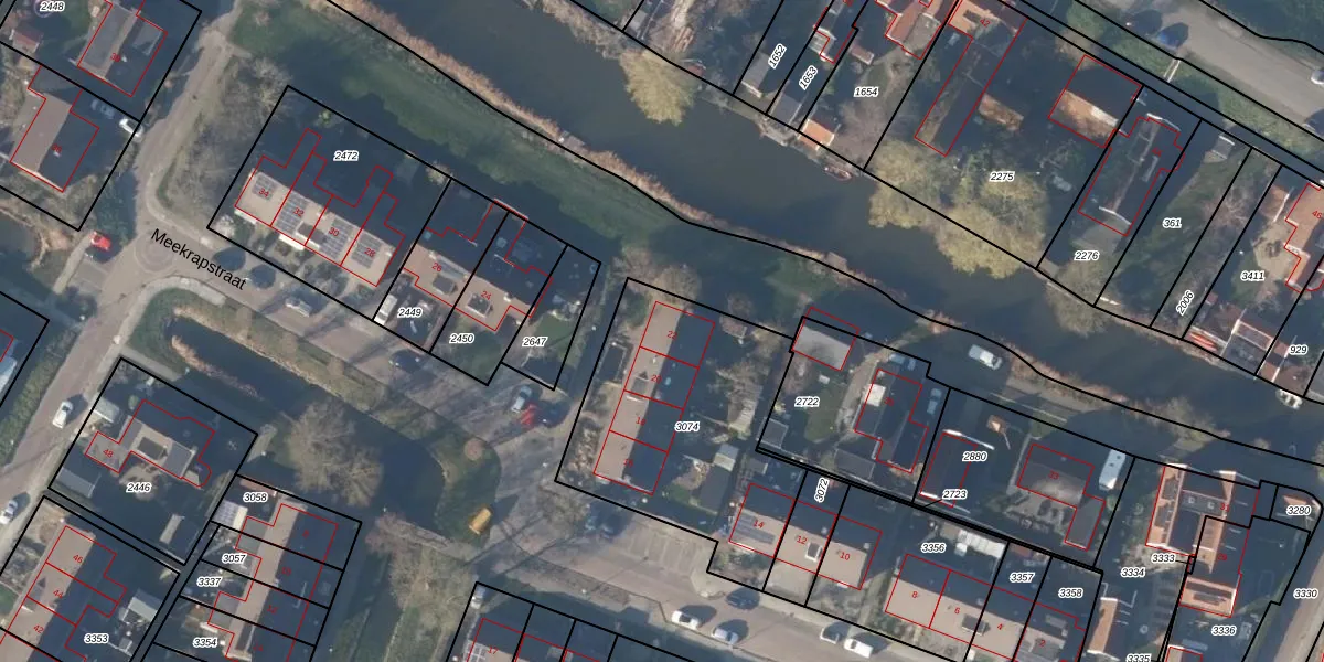 Het perceel waarop Meekrapstraat 22 staat heeft een oppervlakte van 1050 m². Dit is een zeer groot perceel. De perceeloppervlakte wordt geregistreerd door het Kadaster. Gedetailleerde informatie over de maten van dit perceel kunt u vinden in het rapport Kadastrale kaart met maatvoering van Meekrapstraat 22.