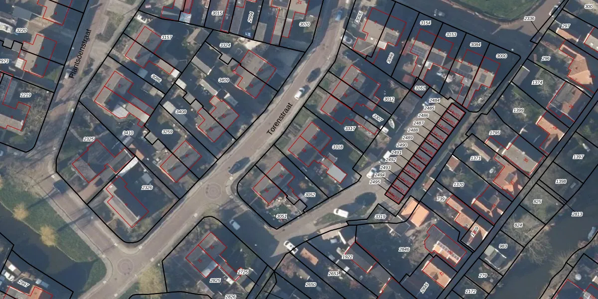 Het perceel waarop Torenstraat 18 staat heeft een oppervlakte van 472 m². Dit is een groot perceel. De perceeloppervlakte wordt geregistreerd door het Kadaster. Gedetailleerde informatie over de maten van dit perceel kunt u vinden in het rapport Kadastrale kaart met maatvoering van Torenstraat 18.