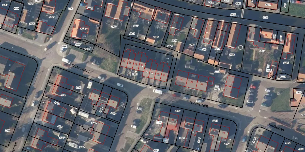 Het perceel waarop Torenstraat 42 staat heeft een oppervlakte van 724 m². Dit is een groot perceel. De perceeloppervlakte wordt geregistreerd door het Kadaster. Gedetailleerde informatie over de maten van dit perceel kunt u vinden in het rapport Kadastrale kaart met maatvoering van Torenstraat 42.