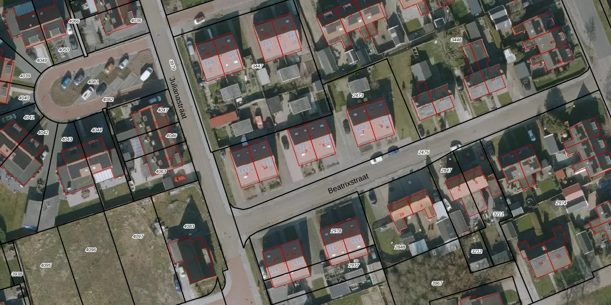 Beatrixstraat 3 is gelegen op kadastraal perceel KLM00D2473. Deze kadastrale aanduiding is uniek en wordt gebruikt door het Kadaster om eigendomsrechten en andere zakelijke rechten vast te leggen. Het perceel maakt onderdeel uit van de kadastrale gemeente Kollum.