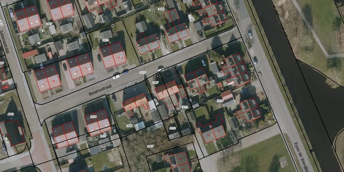 Het perceel waarop Beatrixstraat 8 staat heeft een oppervlakte van 356 m². Dit is een groot perceel. De perceeloppervlakte wordt geregistreerd door het Kadaster. Gedetailleerde informatie over de maten van dit perceel kunt u vinden in het rapport Kadastrale kaart met maatvoering van Beatrixstraat 8.