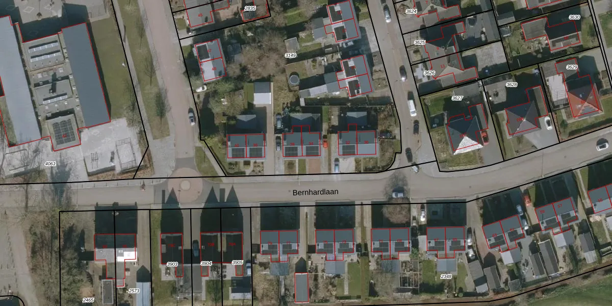 Het perceel waarop Bernhardlaan 34 staat heeft een oppervlakte van 4433 m². Dit is een zeer groot perceel. De perceeloppervlakte wordt geregistreerd door het Kadaster. Gedetailleerde informatie over de maten van dit perceel kunt u vinden in het rapport Kadastrale kaart met maatvoering van Bernhardlaan 34.