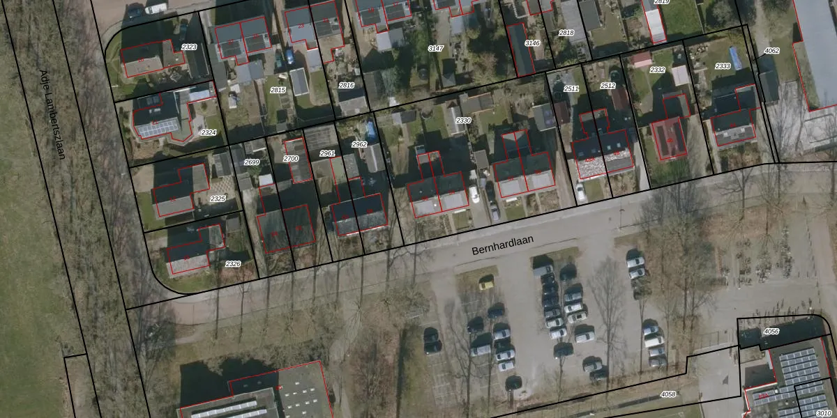 Het perceel waarop Bernhardlaan 56 staat heeft een oppervlakte van 1395 m². Dit is een zeer groot perceel. De perceeloppervlakte wordt geregistreerd door het Kadaster. Gedetailleerde informatie over de maten van dit perceel kunt u vinden in het rapport Kadastrale kaart met maatvoering van Bernhardlaan 56.