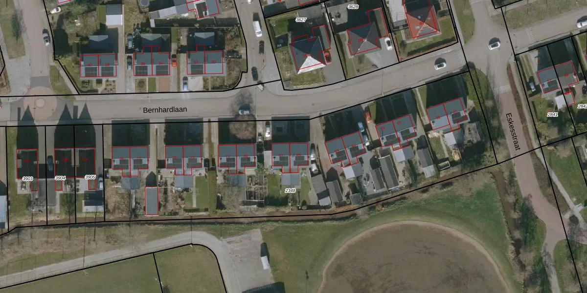 Het perceel waarop Bernhardlaan 65 staat heeft een oppervlakte van 4350 m². Dit is een zeer groot perceel. De perceeloppervlakte wordt geregistreerd door het Kadaster. Gedetailleerde informatie over de maten van dit perceel kunt u vinden in het rapport Kadastrale kaart met maatvoering van Bernhardlaan 65.