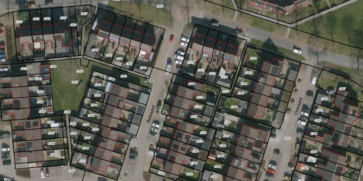 Het perceel waarop Botsaard 1 staat heeft een oppervlakte van 168 m². Dit is een middelgroot perceel. De perceeloppervlakte wordt geregistreerd door het Kadaster. Gedetailleerde informatie over de maten van dit perceel kunt u vinden in het rapport Kadastrale kaart met maatvoering van Botsaard 1.