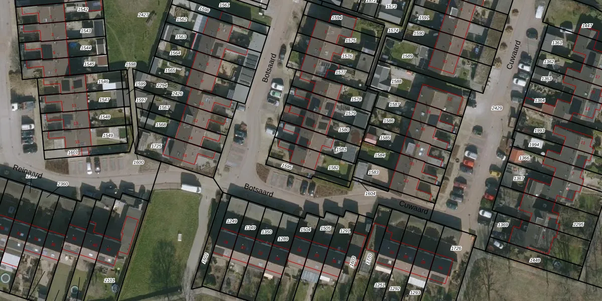 Het perceel waarop Botsaard 15 staat heeft een oppervlakte van 179 m². Dit is een middelgroot perceel. De perceeloppervlakte wordt geregistreerd door het Kadaster. Gedetailleerde informatie over de maten van dit perceel kunt u vinden in het rapport Kadastrale kaart met maatvoering van Botsaard 15.