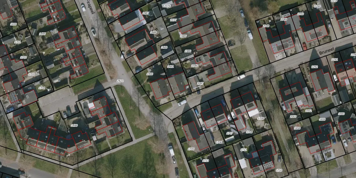 Gebruik de zoekbalk of klik op een perceel voor informatie over de adressen binnen dit perceel.