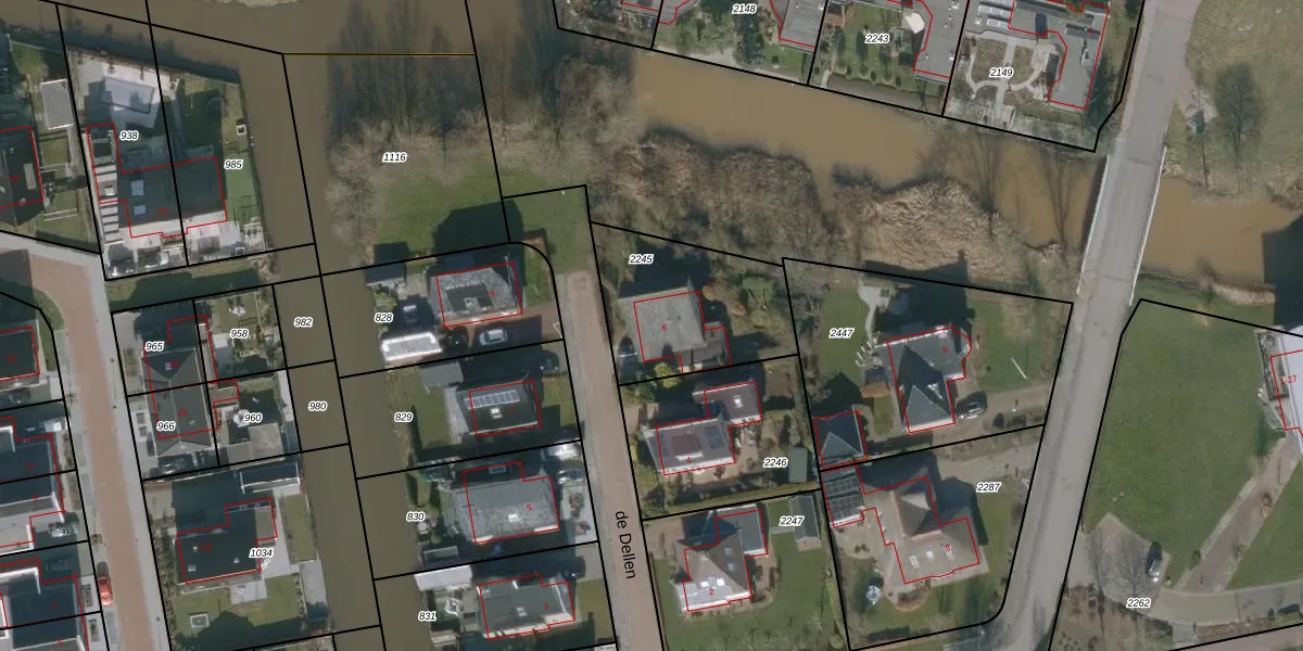 Het perceel waarop de Dellen 6 staat heeft een oppervlakte van 553 m². Dit is een groot perceel. De perceeloppervlakte wordt geregistreerd door het Kadaster. Gedetailleerde informatie over de maten van dit perceel kunt u vinden in het rapport Kadastrale kaart met maatvoering van de Dellen 6.