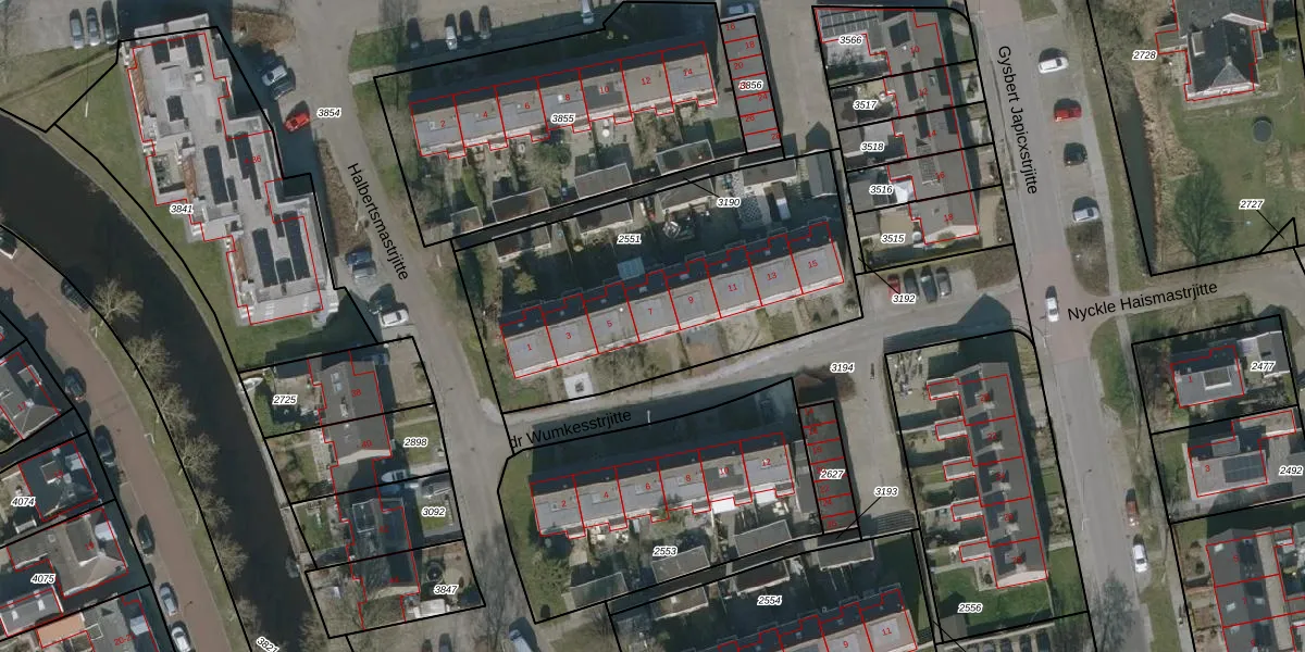 Het perceel waarop dr Wumkesstrjitte 7 staat heeft een oppervlakte van 1573 m². Dit is een zeer groot perceel. De perceeloppervlakte wordt geregistreerd door het Kadaster. Gedetailleerde informatie over de maten van dit perceel kunt u vinden in het rapport Kadastrale kaart met maatvoering van dr Wumkesstrjitte 7.
