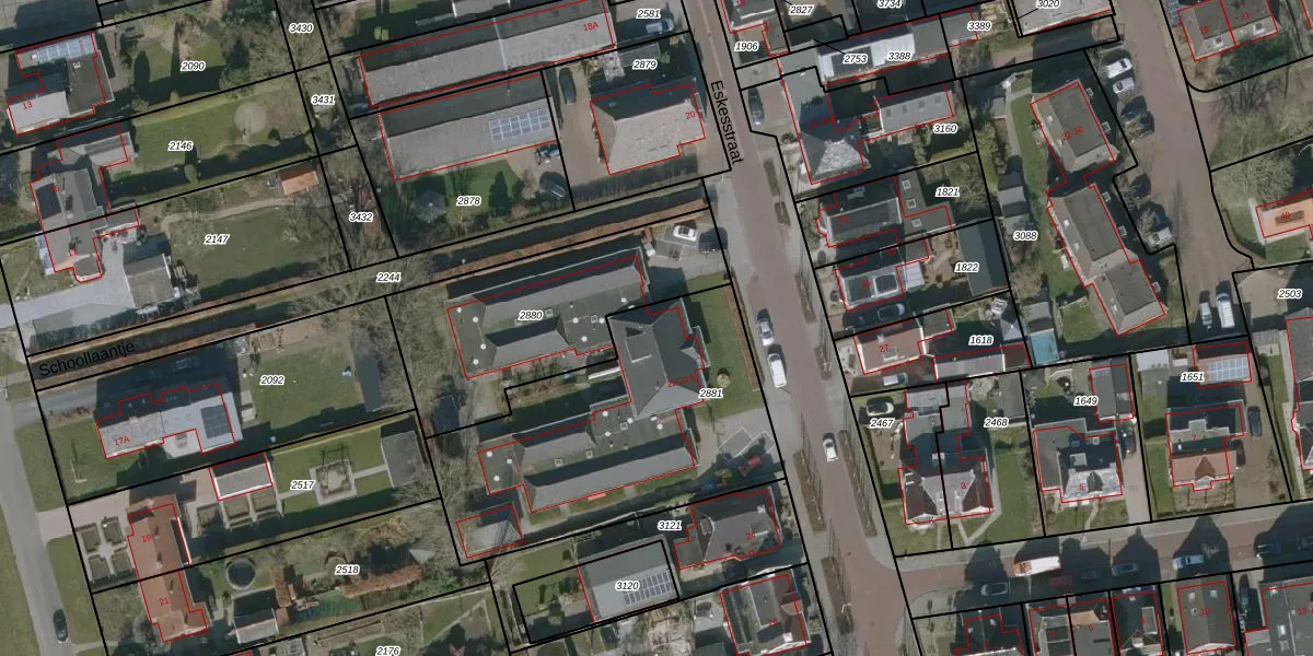 Het perceel waarop Eskesstraat 22 staat heeft een oppervlakte van 1330 m². Dit is een zeer groot perceel. De perceeloppervlakte wordt geregistreerd door het Kadaster. Gedetailleerde informatie over de maten van dit perceel kunt u vinden in het rapport Kadastrale kaart met maatvoering van Eskesstraat 22.