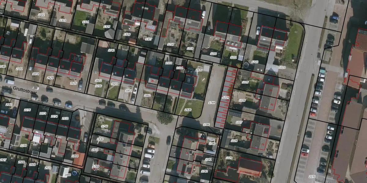 Het perceel waarop Gruttostraat 20 staat heeft een oppervlakte van 422 m². Dit is een groot perceel. De perceeloppervlakte wordt geregistreerd door het Kadaster. Gedetailleerde informatie over de maten van dit perceel kunt u vinden in het rapport Kadastrale kaart met maatvoering van Gruttostraat 20.