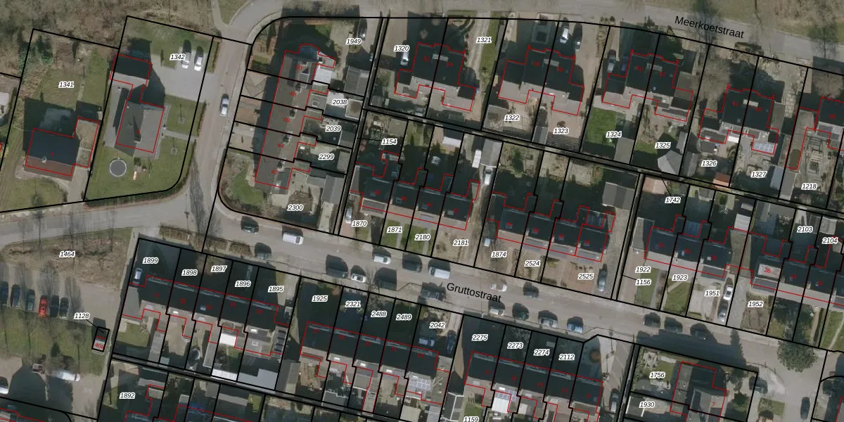 Het perceel waarop Gruttostraat 44 staat heeft een oppervlakte van 203 m². Dit is een middelgroot perceel. De perceeloppervlakte wordt geregistreerd door het Kadaster. Gedetailleerde informatie over de maten van dit perceel kunt u vinden in het rapport Kadastrale kaart met maatvoering van Gruttostraat 44.