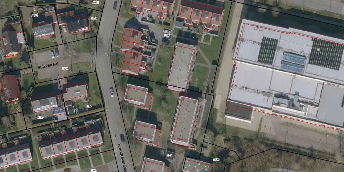 Het perceel waarop Harddraversbaan 60 staat heeft een oppervlakte van 3820 m². Dit is een zeer groot perceel. De perceeloppervlakte wordt geregistreerd door het Kadaster. Gedetailleerde informatie over de maten van dit perceel kunt u vinden in het rapport Kadastrale kaart met maatvoering van Harddraversbaan 60.