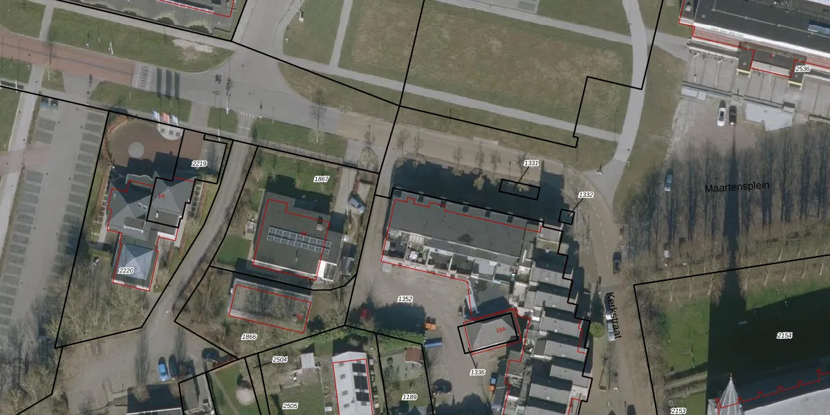 Het perceel waarop Kerkstraat 19 staat heeft een oppervlakte van 2425 m². Dit is een zeer groot perceel. De perceeloppervlakte wordt geregistreerd door het Kadaster. Gedetailleerde informatie over de maten van dit perceel kunt u vinden in het rapport Kadastrale kaart met maatvoering van Kerkstraat 19.