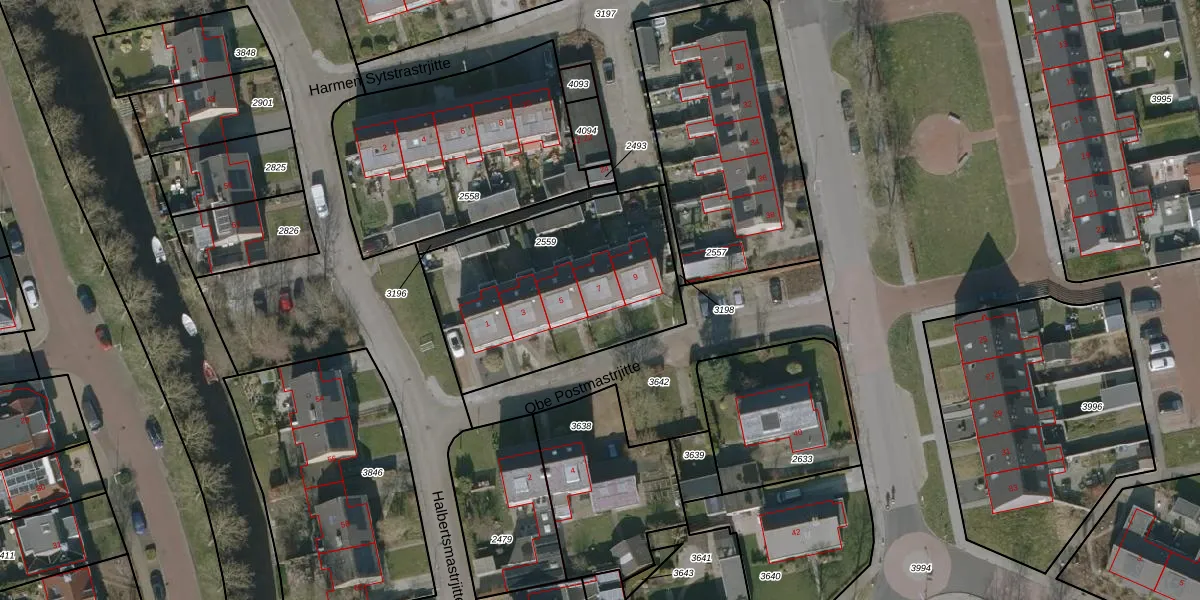 Het perceel waarop Obe Postmastrjitte 7 staat heeft een oppervlakte van 985 m². Dit is een groot perceel. De perceeloppervlakte wordt geregistreerd door het Kadaster. Gedetailleerde informatie over de maten van dit perceel kunt u vinden in het rapport Kadastrale kaart met maatvoering van Obe Postmastrjitte 7.