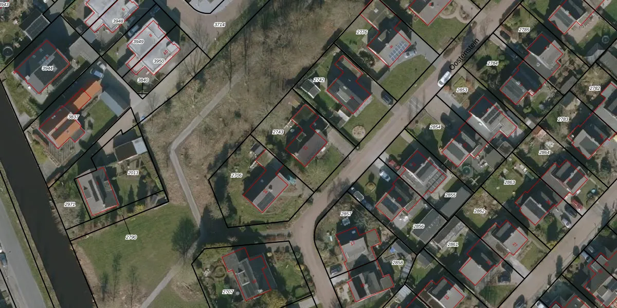 Het perceel waarop Oostenstein 12 staat heeft een oppervlakte van 564 m². Dit is een groot perceel. De perceeloppervlakte wordt geregistreerd door het Kadaster. Gedetailleerde informatie over de maten van dit perceel kunt u vinden in het rapport Kadastrale kaart met maatvoering van Oostenstein 12.
