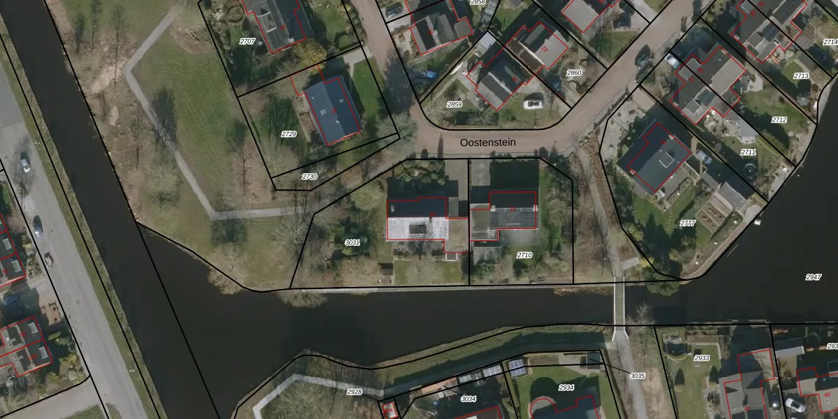 Het perceel waarop Oostenstein 20 staat heeft een oppervlakte van 1039 m². Dit is een zeer groot perceel. De perceeloppervlakte wordt geregistreerd door het Kadaster. Gedetailleerde informatie over de maten van dit perceel kunt u vinden in het rapport Kadastrale kaart met maatvoering van Oostenstein 20.