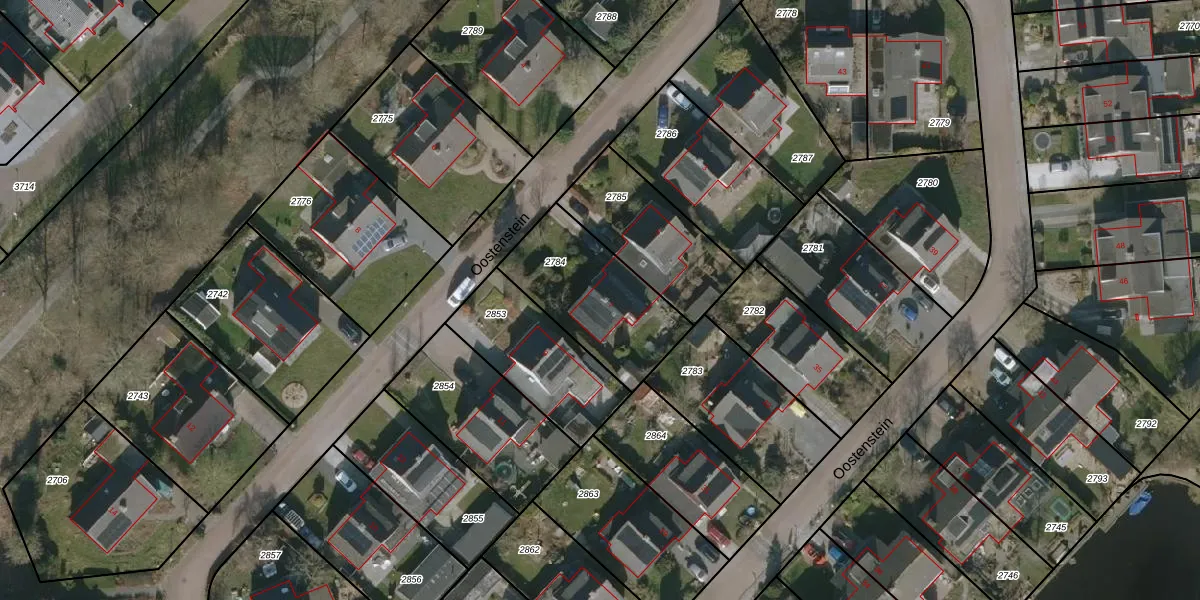 Gebruik de zoekbalk of klik op een perceel voor informatie over de adressen binnen dit perceel.