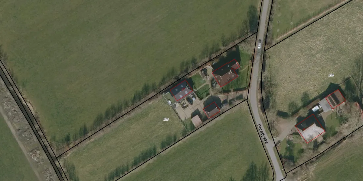 Het perceel waarop Paradyske 12-A staat heeft een oppervlakte van 3405 m². Dit is een zeer groot perceel. De perceeloppervlakte wordt geregistreerd door het Kadaster. Gedetailleerde informatie over de maten van dit perceel kunt u vinden in het rapport Kadastrale kaart met maatvoering van Paradyske 12-A.