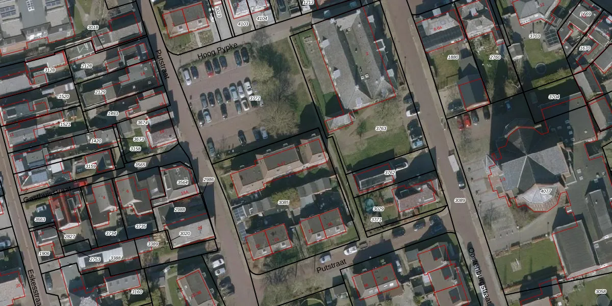 Het perceel waarop Putstraat 15 staat heeft een oppervlakte van 1430 m². Dit is een zeer groot perceel. De perceeloppervlakte wordt geregistreerd door het Kadaster. Gedetailleerde informatie over de maten van dit perceel kunt u vinden in het rapport Kadastrale kaart met maatvoering van Putstraat 15.