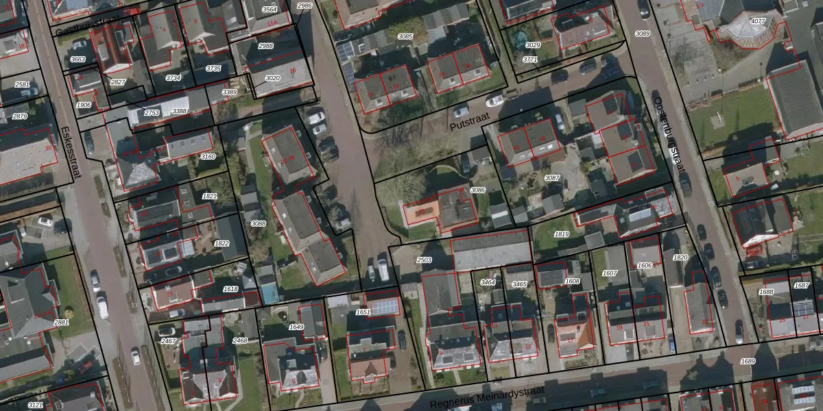 Het perceel waarop Putstraat 40 staat heeft een oppervlakte van 550 m². Dit is een groot perceel. De perceeloppervlakte wordt geregistreerd door het Kadaster. Gedetailleerde informatie over de maten van dit perceel kunt u vinden in het rapport Kadastrale kaart met maatvoering van Putstraat 40.