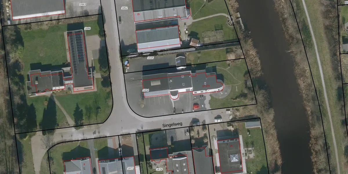 Het perceel waarop Singelweg 27-A staat heeft een oppervlakte van 1913 m². Dit is een zeer groot perceel. De perceeloppervlakte wordt geregistreerd door het Kadaster. Gedetailleerde informatie over de maten van dit perceel kunt u vinden in het rapport Kadastrale kaart met maatvoering van Singelweg 27-A.
