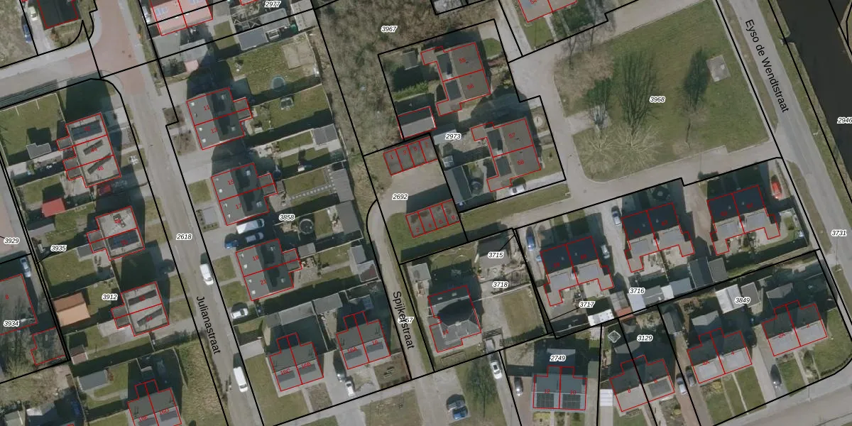 Het perceel waarop Spijkerstraat 4 staat heeft een oppervlakte van 450 m². Dit is een groot perceel. De perceeloppervlakte wordt geregistreerd door het Kadaster. Gedetailleerde informatie over de maten van dit perceel kunt u vinden in het rapport Kadastrale kaart met maatvoering van Spijkerstraat 4.