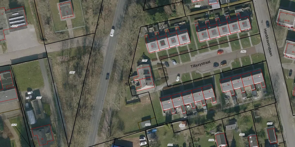 Het perceel waarop Tilburystraat 11 staat heeft een oppervlakte van 4840 m². Dit is een zeer groot perceel. De perceeloppervlakte wordt geregistreerd door het Kadaster. Gedetailleerde informatie over de maten van dit perceel kunt u vinden in het rapport Kadastrale kaart met maatvoering van Tilburystraat 11.