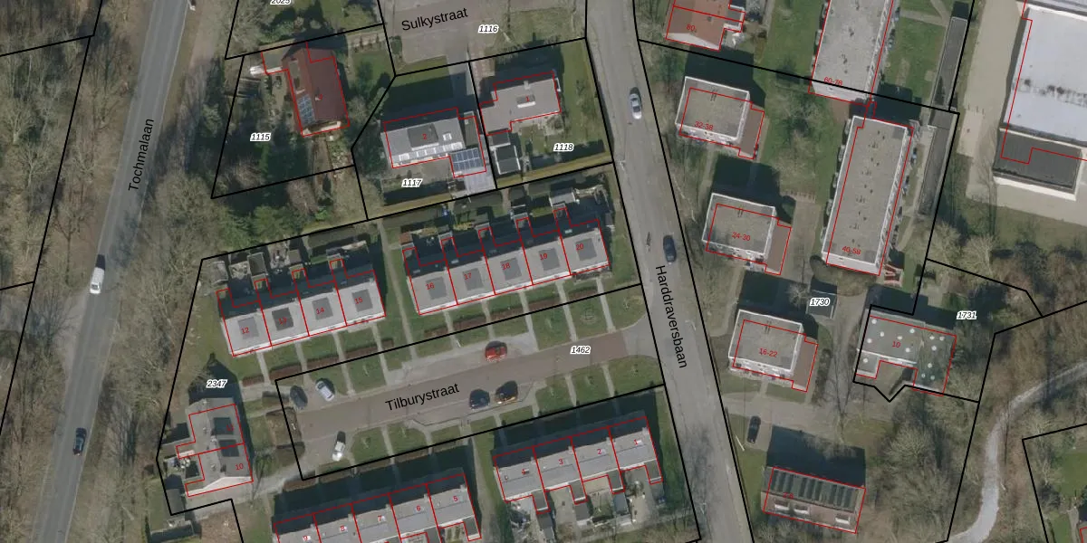 Het perceel waarop Tilburystraat 19 staat heeft een oppervlakte van 4840 m². Dit is een zeer groot perceel. De perceeloppervlakte wordt geregistreerd door het Kadaster. Gedetailleerde informatie over de maten van dit perceel kunt u vinden in het rapport Kadastrale kaart met maatvoering van Tilburystraat 19.