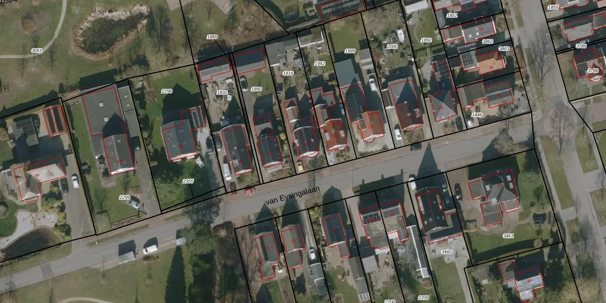 Gebruik de zoekbalk of klik op een perceel voor informatie over de adressen binnen dit perceel.