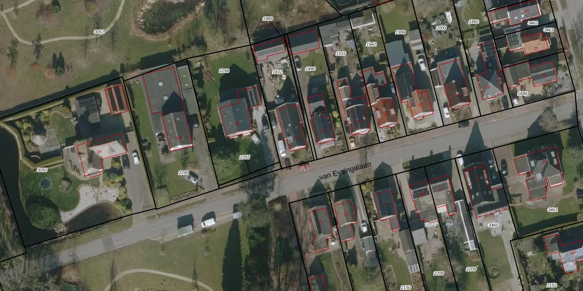 Gebruik de zoekbalk of klik op een perceel voor informatie over de adressen binnen dit perceel.
