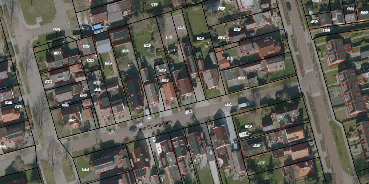Gebruik de zoekbalk of klik op een perceel voor informatie over de adressen binnen dit perceel.