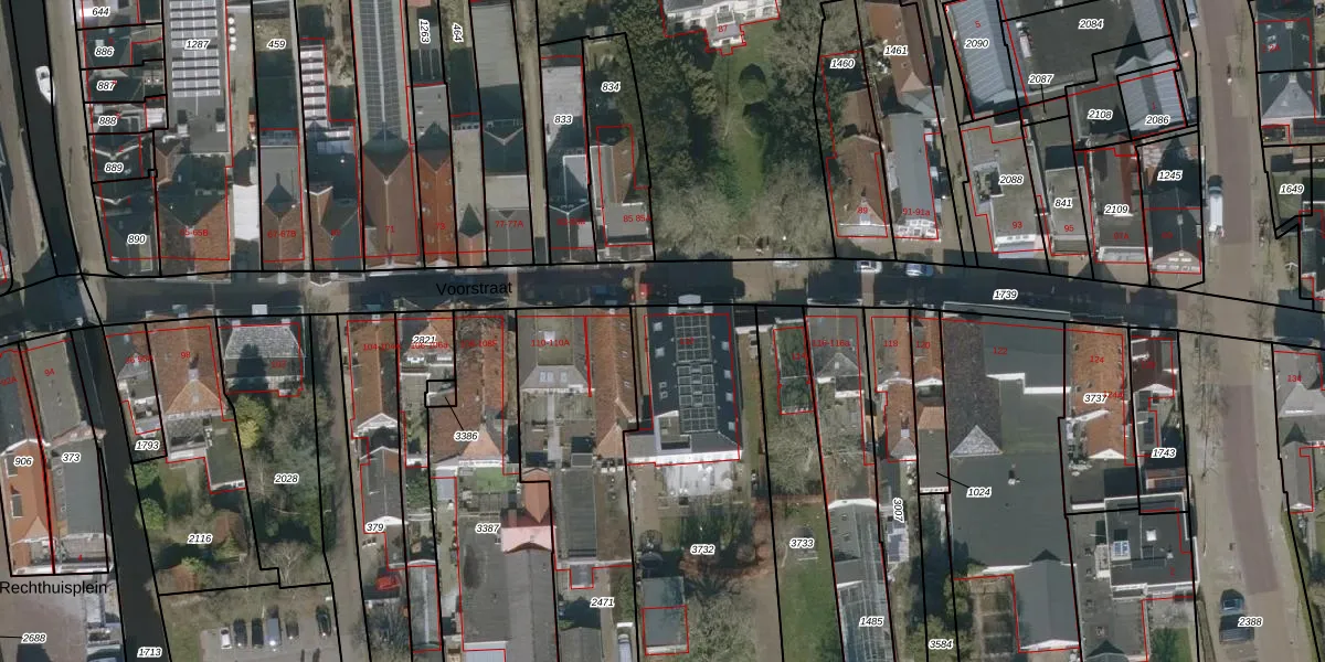Het perceel waarop Voorstraat 112-A staat heeft een oppervlakte van 1330 m². Dit is een zeer groot perceel. De perceeloppervlakte wordt geregistreerd door het Kadaster. Gedetailleerde informatie over de maten van dit perceel kunt u vinden in het rapport Kadastrale kaart met maatvoering van Voorstraat 112-A.