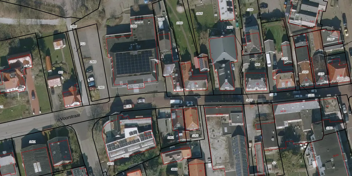 Het perceel waarop Voorstraat 13 staat heeft een oppervlakte van 495 m². Dit is een groot perceel. De perceeloppervlakte wordt geregistreerd door het Kadaster. Gedetailleerde informatie over de maten van dit perceel kunt u vinden in het rapport Kadastrale kaart met maatvoering van Voorstraat 13.