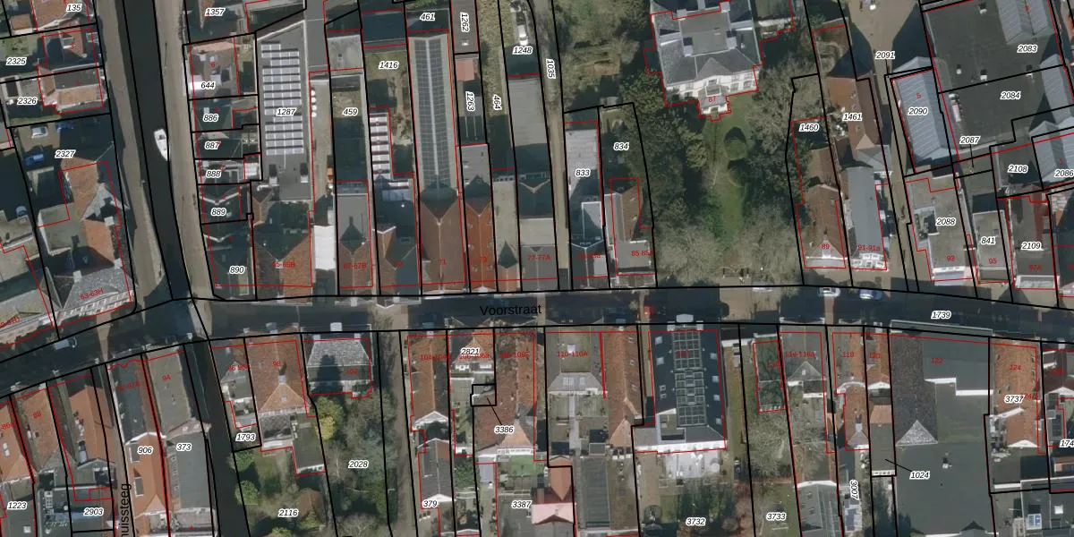Het perceel waarop Voorstraat 77 staat heeft een oppervlakte van 357 m². Dit is een groot perceel. De perceeloppervlakte wordt geregistreerd door het Kadaster. Gedetailleerde informatie over de maten van dit perceel kunt u vinden in het rapport Kadastrale kaart met maatvoering van Voorstraat 77.