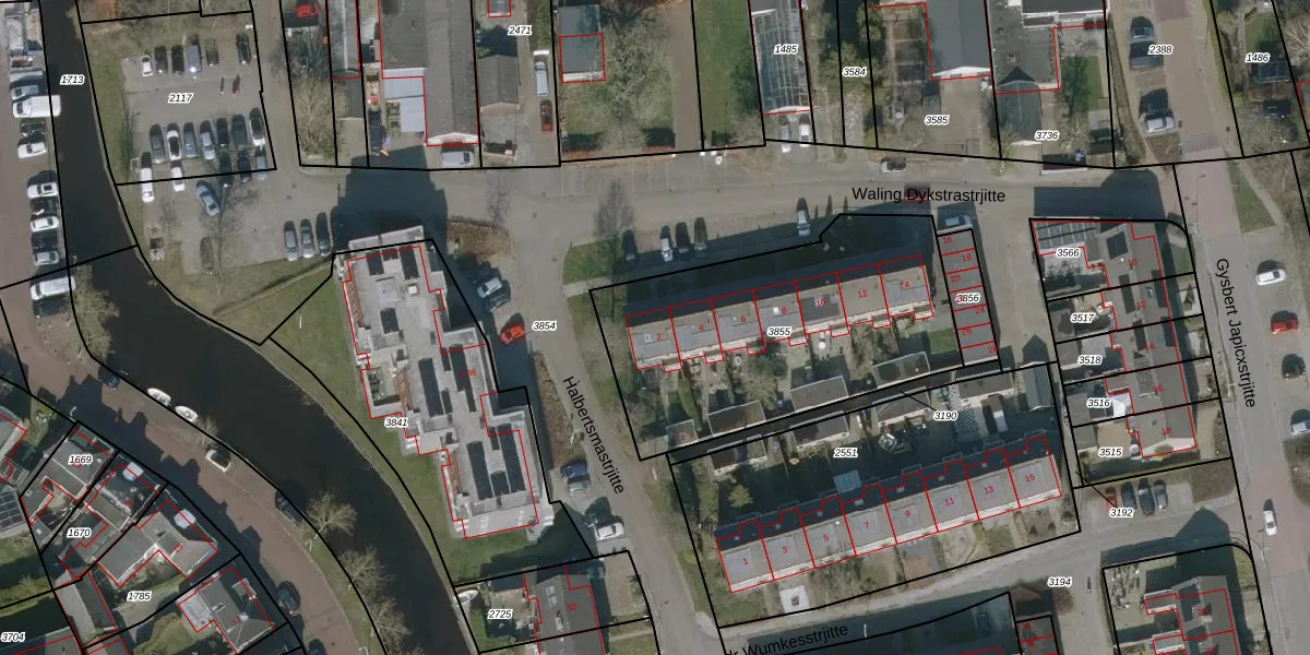 Het perceel waarop Waling Dykstrastrjitte 2 staat heeft een oppervlakte van 1349 m². Dit is een zeer groot perceel. De perceeloppervlakte wordt geregistreerd door het Kadaster. Gedetailleerde informatie over de maten van dit perceel kunt u vinden in het rapport Kadastrale kaart met maatvoering van Waling Dykstrastrjitte 2.