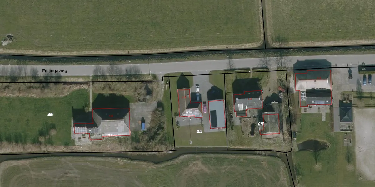 Foijingaweg 110 is gelegen op kadastraal perceel KLM00F164. Deze kadastrale aanduiding is uniek en wordt gebruikt door het Kadaster om eigendomsrechten en andere zakelijke rechten vast te leggen. Het perceel maakt onderdeel uit van de kadastrale gemeente Kollum.