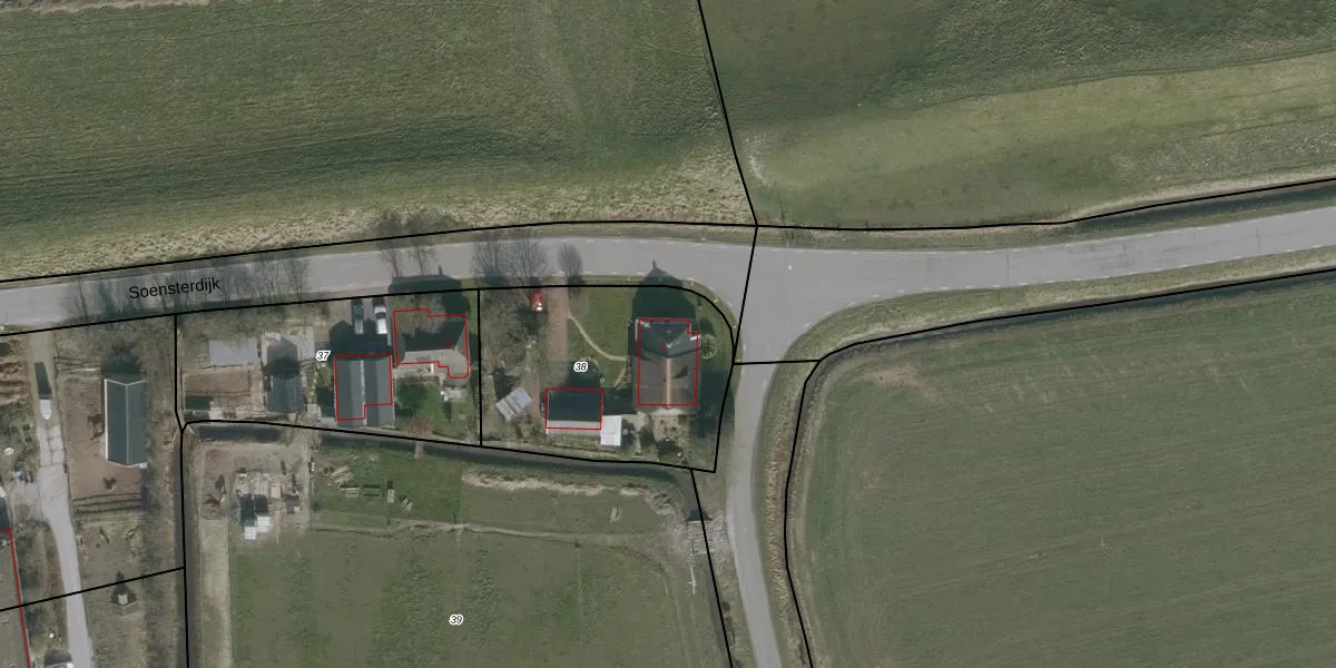 Het perceel waarop Soensterdijk 1 staat heeft een oppervlakte van 940 m². Dit is een groot perceel. De perceeloppervlakte wordt geregistreerd door het Kadaster. Gedetailleerde informatie over de maten van dit perceel kunt u vinden in het rapport Kadastrale kaart met maatvoering van Soensterdijk 1.