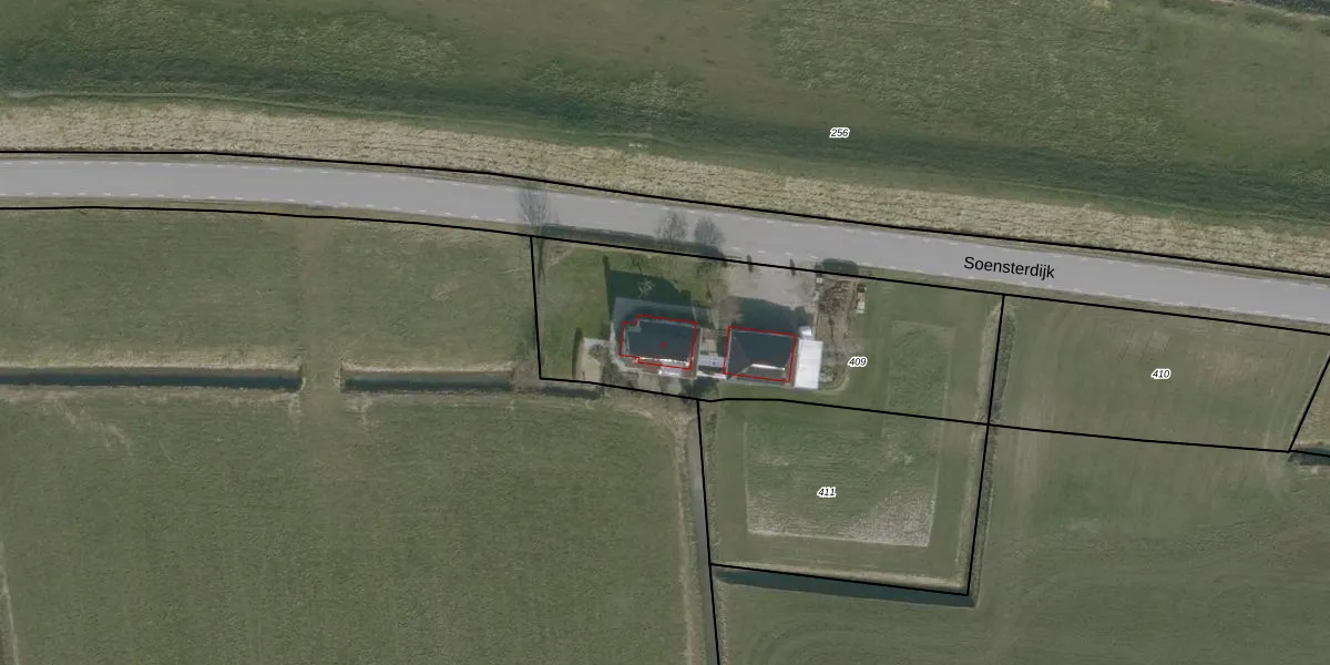 Het perceel waarop Soensterdijk 8 staat heeft een oppervlakte van 1420 m². Dit is een zeer groot perceel. De perceeloppervlakte wordt geregistreerd door het Kadaster. Gedetailleerde informatie over de maten van dit perceel kunt u vinden in het rapport Kadastrale kaart met maatvoering van Soensterdijk 8.